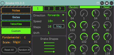The Snake Sequencer is one of those devices that perfectly bridges hardware and software thinking. Yes, it gives you standard sequencing with randomizable notes, gates, and velocities. But where it gets really powerful is in the custom mode.
