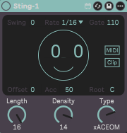 Sometimes you need something even simpler than Snake. Sting is a basic trigger generator that's perfect for quick techno loops. Eight steps, adjustable density, different random algorithms, swing, variable gate lengths - it's an instant inspiration tool that gets you making music instead of getting lost in menus.