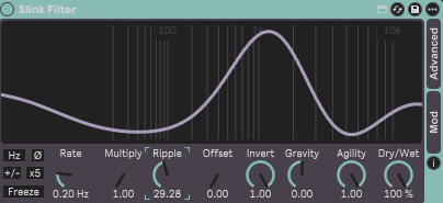 I couldn't believe Oscar hadn't discovered Slink Filter yet! It's a water-based filter with ripples that you can multiply and sync. Even when it's static, you get this beautiful frequency diagram that works almost like a visual EQ.